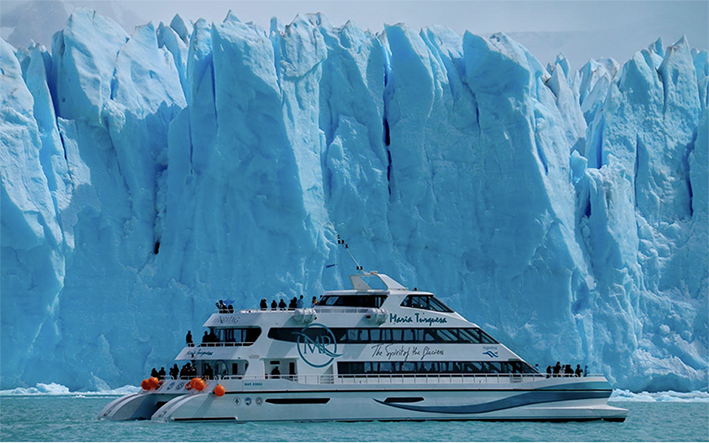 We also offer cruises on Lake Argentino aboard a modern boat specially designed to approach the glaciers at a safe yet intimate distance. Our guests enjoy exclusive access to the VIP deck, accommodating just 16 people, for the utmost comfort while navigating between the icebergs. During the cruise, a gourmet lunch is served with breathtaking views of Southern Patagonia’s main attraction — the Perito Moreno Glacier.